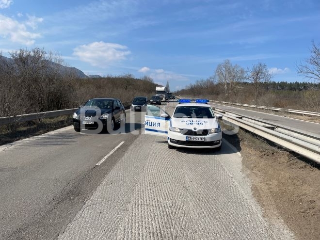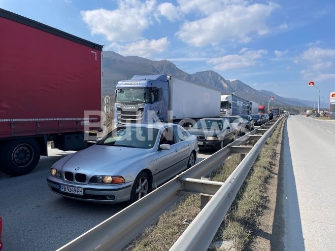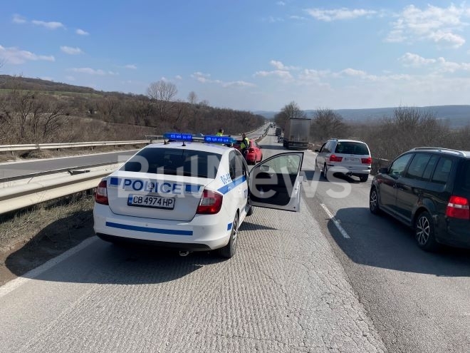 Инцидентът създава проблем за трафика в почивния ден към София и по тази причина се е образувала километрична опашка.