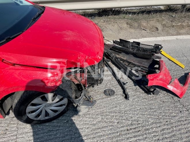 От сблъсъка, предната част на "Фолксваген"-а със софийска регистрация е напълно смачкана.
