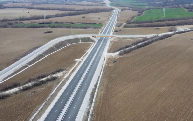 Видео с дрон показва напредъка на строителите. На кадрите се вижда, че участък от Лот 1 вече е напълно готов. Той е с дължина 7 км и заобикаля селата Новачене и Скравена.