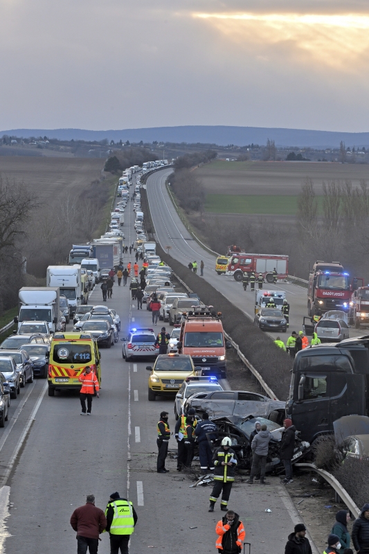Повече от 40 леки и товарни автомобила (32 коли, 5 микробуса и 6 камиона) са се сблъскали привечер на магистрала М1, на излизане от Будапеща. Някои от тях са изгорели напълно, пише Hirado.hu.