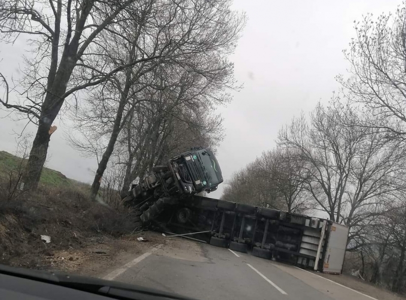 Зрелищна каскада! ТИР навири точилата и затвори Е-79 между Видин и Монтана /снимки/