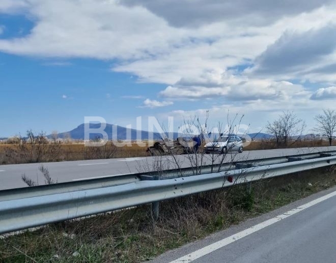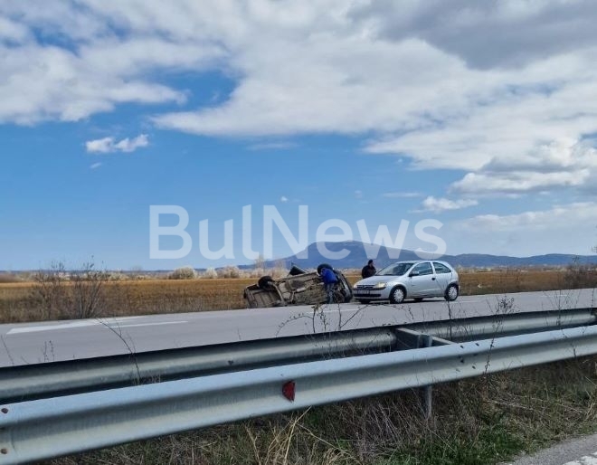 Кола се обърна на международния път Е-79 между Враца и Монтана, видя първо репортер на агенция BulNews.