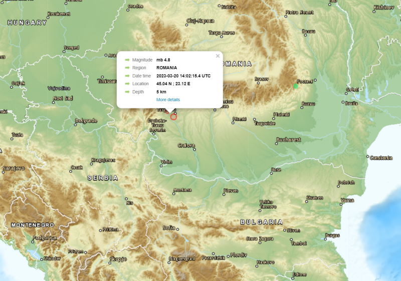 Той е бил с магнитуд 4,9 по Рихтер с епицентър румънския окръг Горж, съобщиха от Националния институт по геофизика.