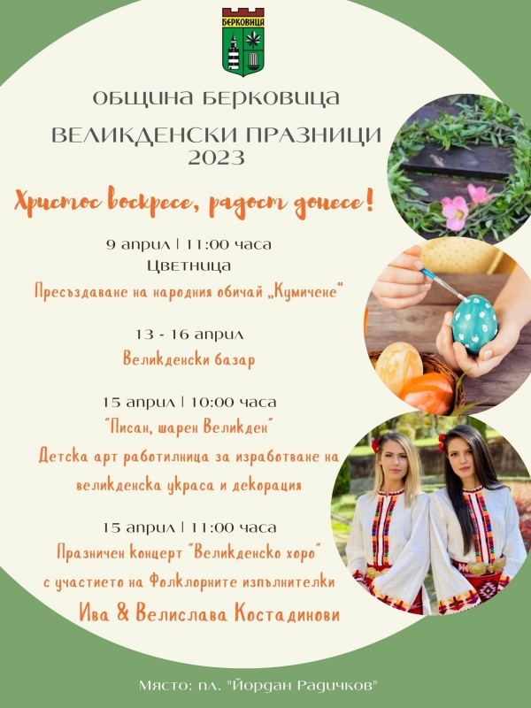 Пролет е! Наближава Великден! За поредна година Берковица ще посрещне един от най-светлите празници с пъстра украса и културна програма.