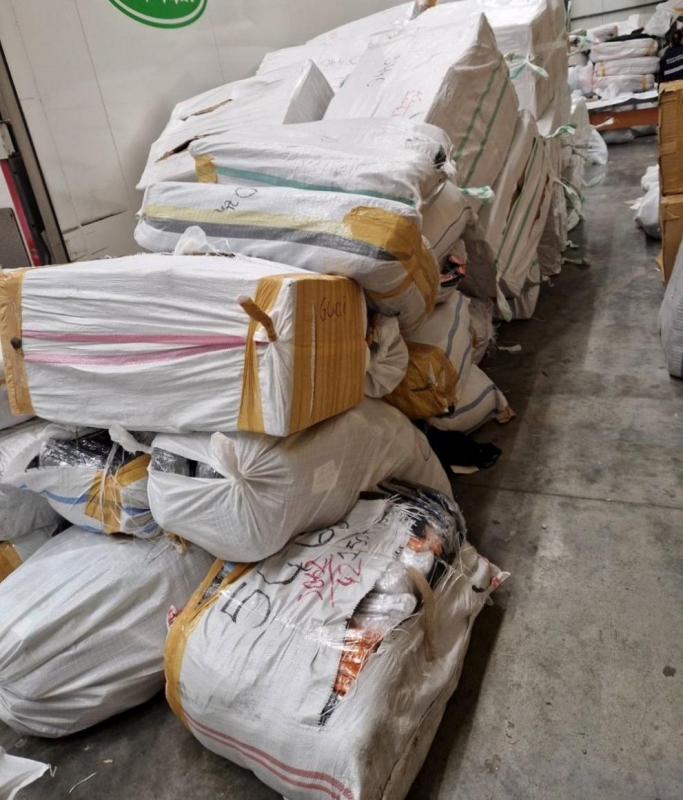 Митническите служители откриват сред декларираната стока 34 546 текстилни изделия, по-голяма част от които дамски и мъжки тениски и спортни екипи, 4386 чифта обувки и 57 чанти, носещи лога на известни марки.