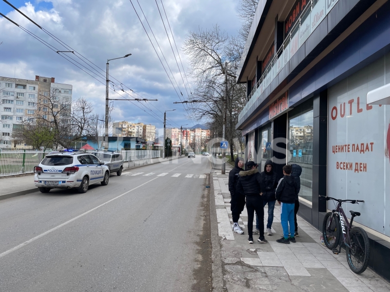 Екшън в ж.к. „Дъбника“ във Враца! 4 патрулки обградиха магазин за втора употреба, извеждат арестанти с белезници