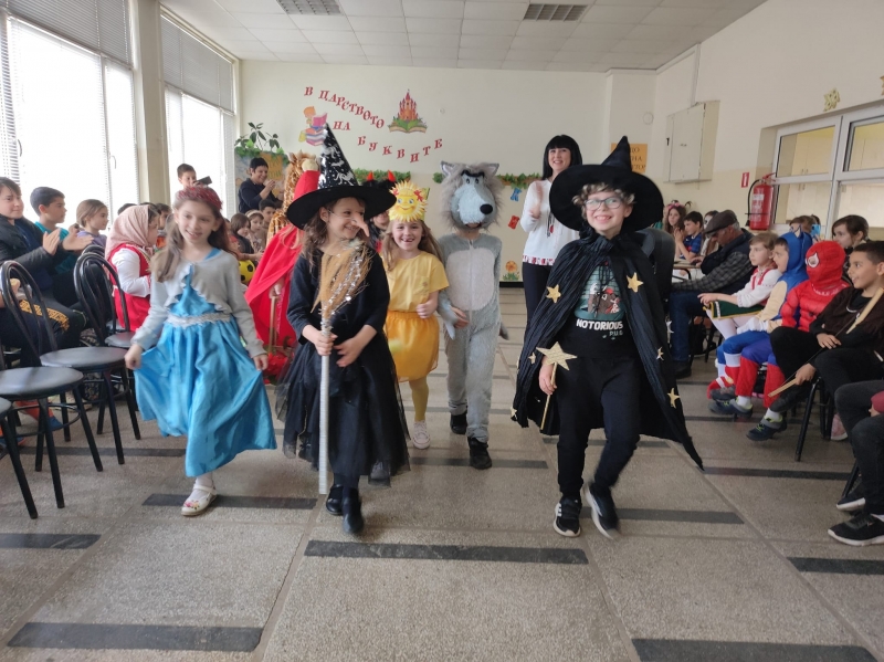 За разкош творческата седмица приключи с пъстър карнавал. Малките възпитаници на училището дефилираха и се забавляваха, преоблечени като любими приказни герои.