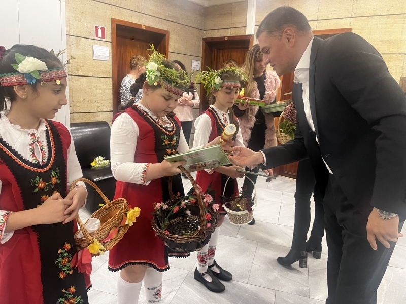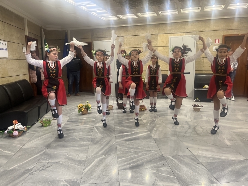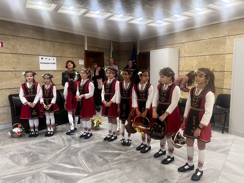 Облечени в цветни народни носии, момичетата създадоха неповторима емоция и внесоха пролетно празнично настроение в сградата на Областна администрация, като изпълниха песни, танци, наричания за здраве и късмет.