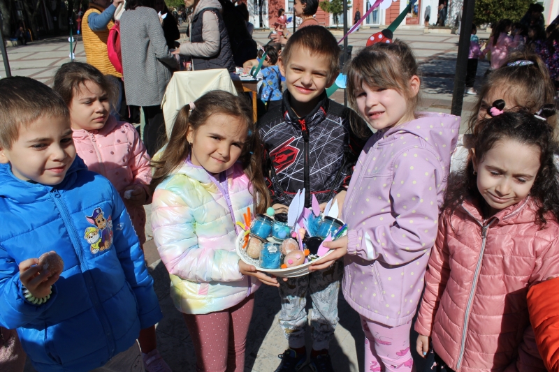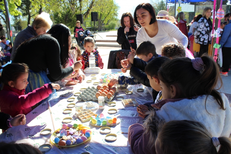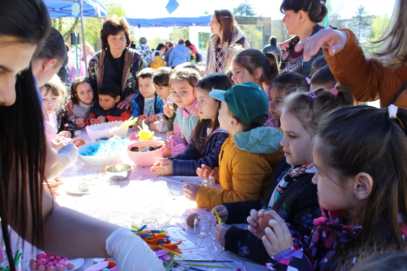 В специално подготвени шатри - крафт ателиета, бяха осигурени различни материали, с помощта на които дечицата сътвориха различни образци в духа на празника, потапяйки се в магията на един от най-веселите и забавни ритуали, свързани с най- вълнуващия празник - Великден