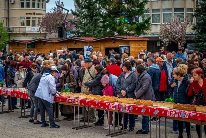 В празничния ден всички жители и гости на града получиха от 100-метровия козунак, а програмата продължи с концерт на фолклорната изпълнителка Ива Давидова и пъстри български хора!