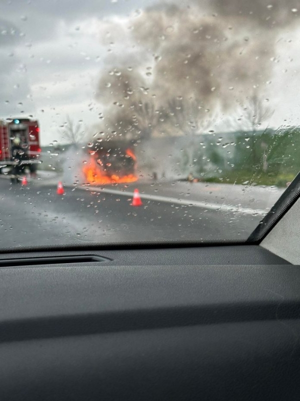 Нов ад на "Тракия"! Кола се запали в движение, задръстването е километрично /снимки/