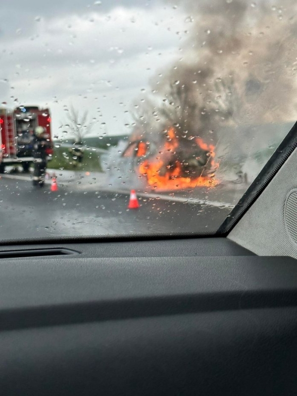 Колата е почти напълно изгоряла въпреки пристигналия на място пожарникарски екип.