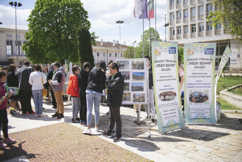 Представители на петте училища и на двете професионални гимназии презентираха по уникален начин възможностите за обучение в местните учебни заведения, новостите в учебните програми, паралелките и специалностите, в които ще бъде осъществен прием през учебната 2023/2024 г.