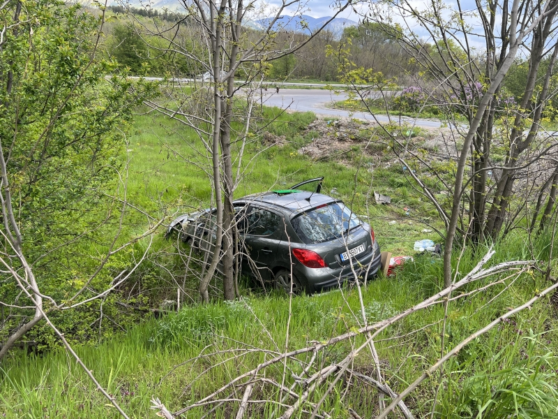 Колата с великотърновска регистрация, шофирана от жена, не успяла да вземе острия завой и паднала в крайпътното дере.