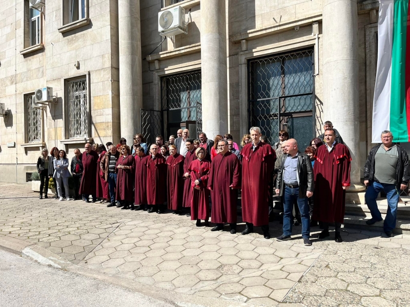 Днес прокурори от Окръжна и Районна прокуратура – Враца, следователи и съдебни служители се събраха на протест пред съдебната палата във Враца, видя агенция BulNews. Те изразиха възмущението си от опита за покушение срещу главния прокурор Иван Гешев вчера и подкрепата си към него и семейството му.