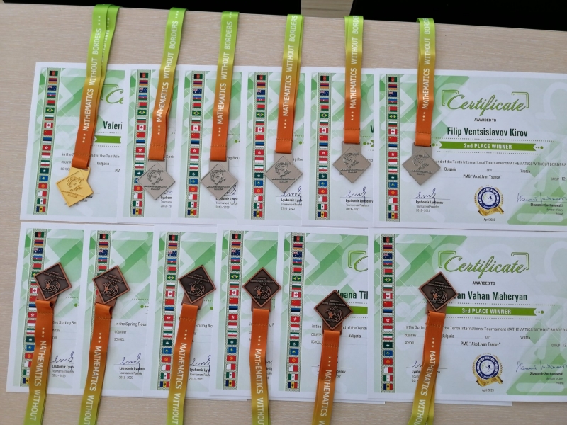 Общо 12 медала - 1 златен, 5 сребърни и 6 бронзови спечелиха възпитаниците на ППМГ „Акад. Иван Ценов“ – Враца от пролетния кръг на международния турнир „Математика без граници”. В състезанието взеха участие 28 ученици от гимназията от V до XII клас.