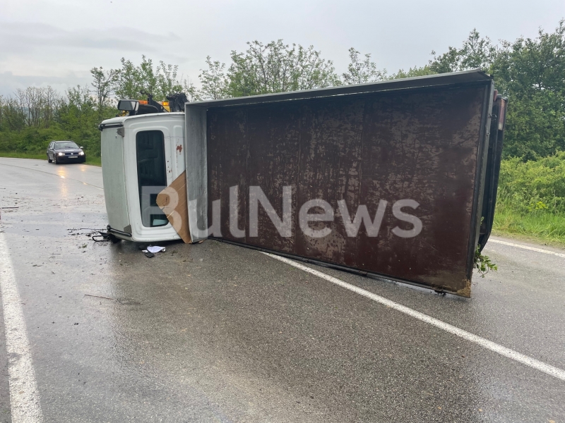 Камион катастрофира на пътя между Криводол и Враца, видя първо репортер на агенция BulNews.