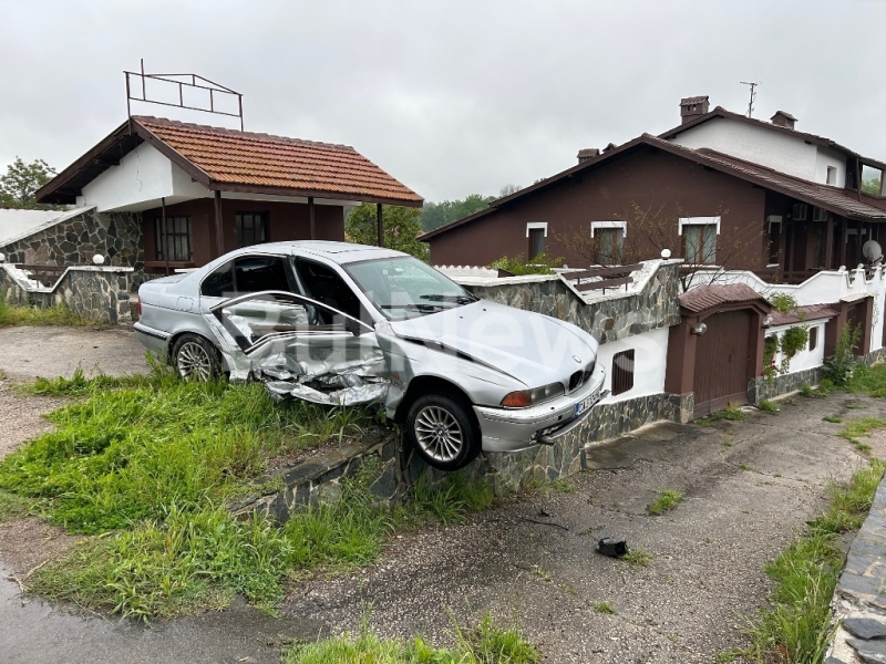 Няма край! БМВ кацна върху оградата на „Вичов хан“ след удар с друга кола, шофьорите са в болница /снимки/
