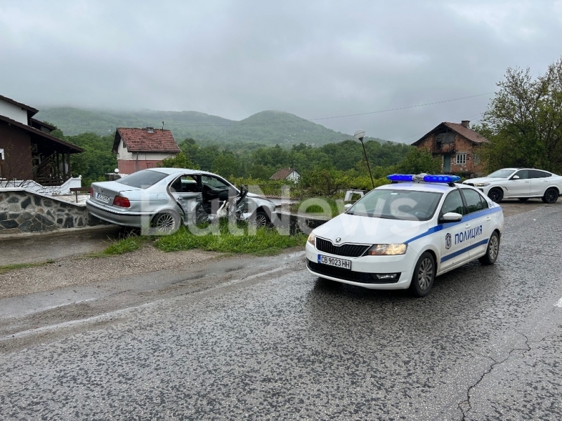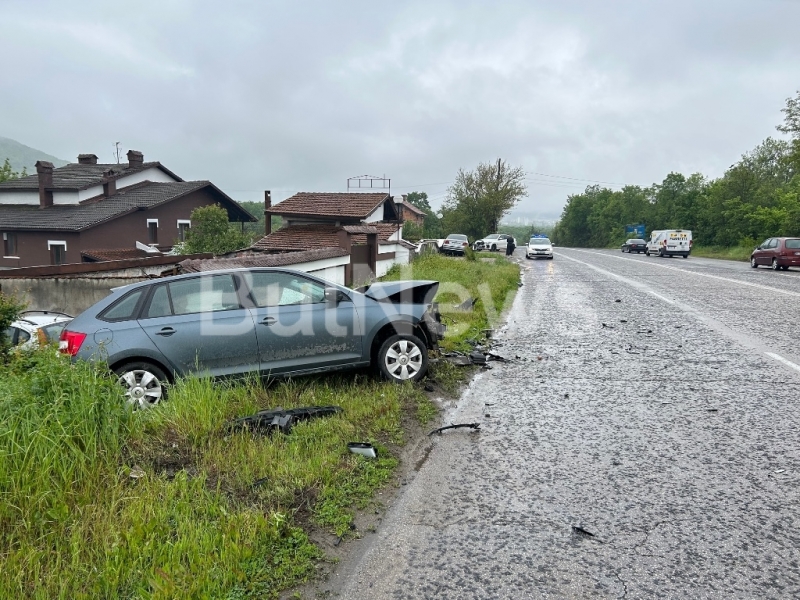 Сблъсъкът е бил между БМВ със софийска региострация и пловдивска „Шкода“. Най-вероятно немското возило се е завъртяло на мокрия асфалт, при което е ударено странично от другата кола.