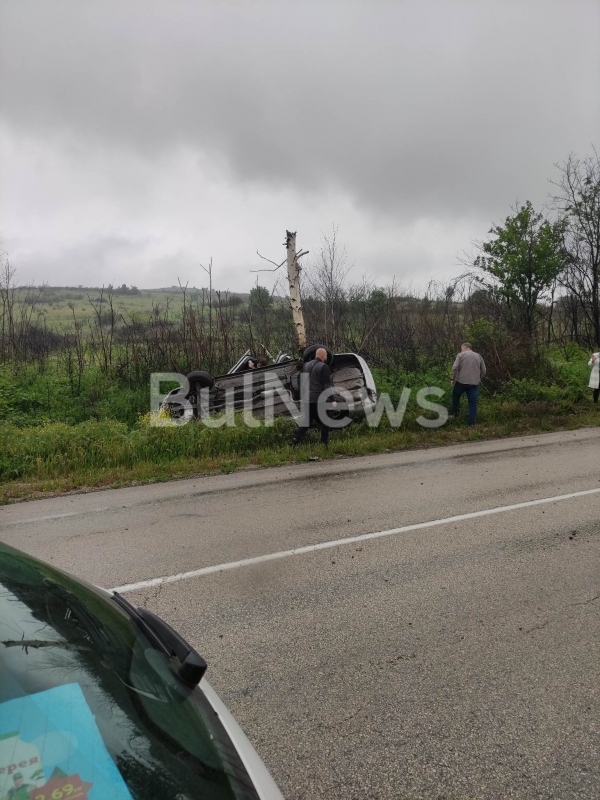 Войната по пътищата не спира! Кола изхвърча от пътя и се обърна по таван във Видинско, майка на 3 деца се размина на косъм от сблъсък /снимки/