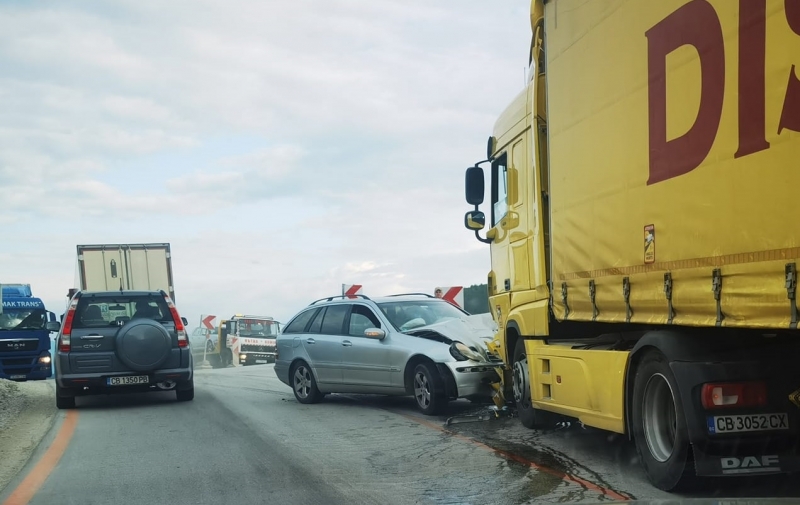 От последните минути! Врачански „Мерцедес“ се заби в ТИР на Е-79 между Мездра и Ботевград, трафикът е затруднен /снимки/