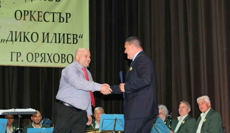 Кметът на Община Оряхово Росен Добрев и председателя на Общинския съвет Румяна Декова поднесоха кошница с цветя, парична награда и се обърнаха към ръководителя на оркестъра Калоян Трайков и оркестрантите с думите:
