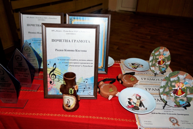 Почетни грамоти получиха най-възрастната жителка на селото - 90-годишната Иванка Илиева, Радка Конова и Асен Георгиев, който подари на читалището своята най-нова книга „С мъдростта на годините“.