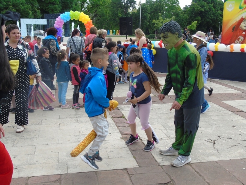 На сцената и около нея, деца от всички детски градини на общината взеха участие в забавните игри, танци и мини диско с участието на Парти агенция „Веселяците“ от Русе. Атрактивно се включиха популярни приказни и филмови герои, които децата познават и обичат. Пред специално подготвеното арт ателие се изви опашка от желаещи да получат красива рисунка върху щастливите си детски лица.