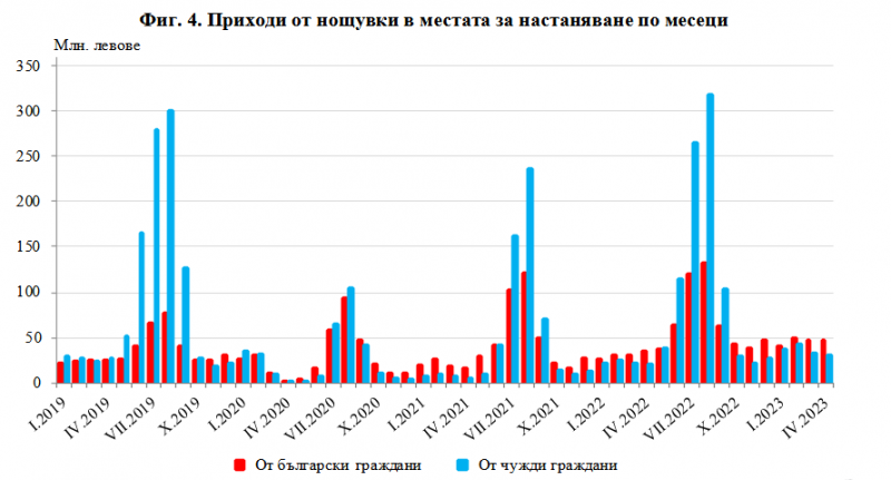 Приходите от нощувки през април у нас достигат 76.7 млн. лв., или с 37.3% повече в сравнение с април 2022 година. Това показват данните на Националния статистически институт.