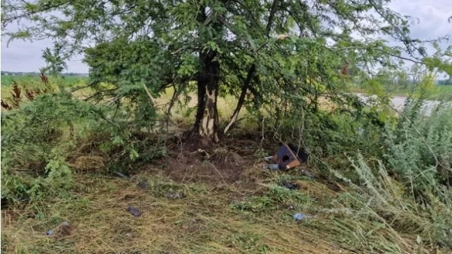 Фотоси от местопроизшествието пък показват дървото, където се е забила колата. На мястото и в този час има екип криминалисти, който разследва случая.
