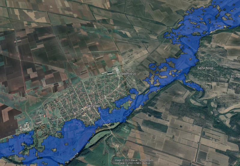 По този повод, от Meteo Balkans направиха симулация за това какво ще е положението в населените места по поречието на река Огоста.