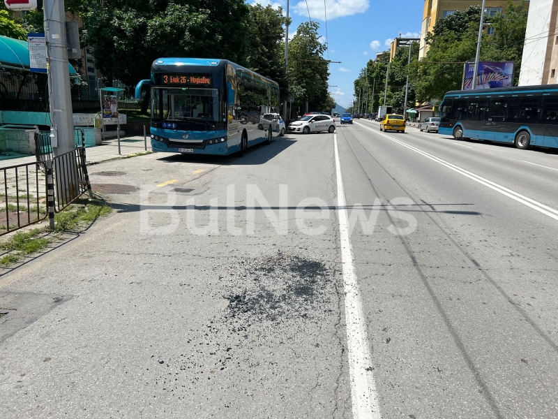 Жена е пострадала при инцидент между кола и автобус от градския транспорт във Враца, видя репортер на агенция BulNews.