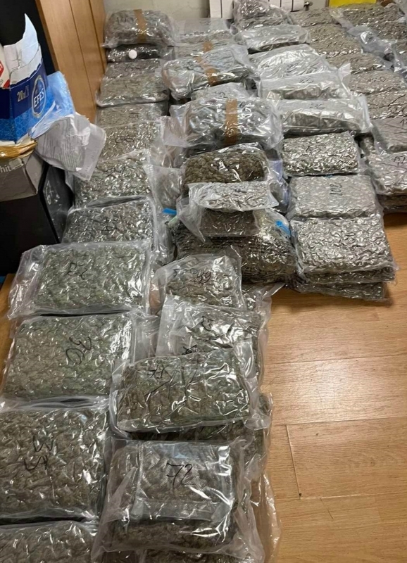 При последвалата физическа проверка митническите инспектори откриват под седалките и в спалното помещение 10 текстилни сака с общо 165 пакета със зелено-кафява суха растителна маса. При извършения полеви наркотест съдържанието на пакетите реагира на марихуана.