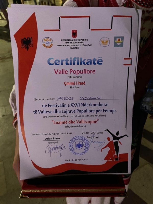 Детският танцов състав „Мездренче“ участва в Международен фолклорен фестивал в Албания, Косово и Северна Македония