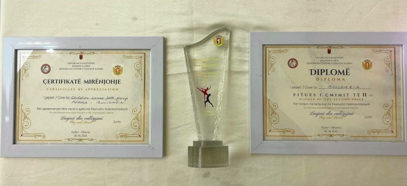 Всички участници в XXVI International Festival of Folk Dances and Games for Children „Play Games and Dance“ получиха плакети, дипломи и сертификати за участие, за оригинална хореография и костюми и за успешно представяне във фестивала.