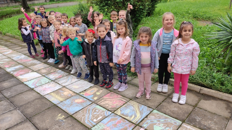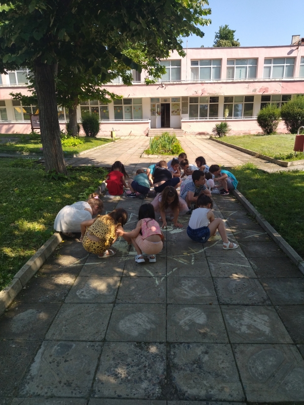 С вдъхновение, голямо старание и творческо въображение децата рисуваха на асфалт своето мечтано лято, изпълнено с много игри и забавления. Пъстра палитра от детски рисунки украси алеята в двора и зарадва малките и големи посетители. Разходки на открито в парк ДНА, занимателни конструктивни дейности и в забавна танцова фиеста с вълнение и лятно настроение участват малките творци.