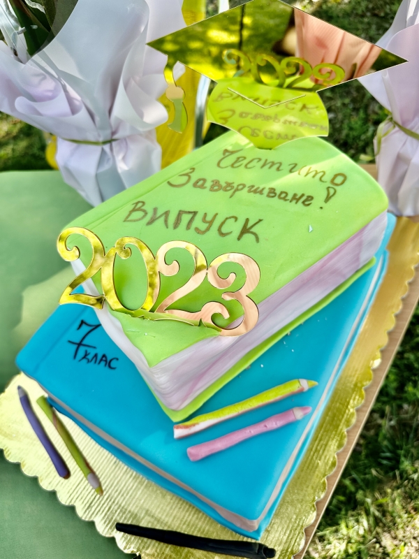 След емоционалния момент за завършилите седмокласници и техните класни ръководители – г-ж Нели Димитрова и г-н Марко Кръстев, за всички тях общинското ръководство поднесе сладък подарък – празнична торта.