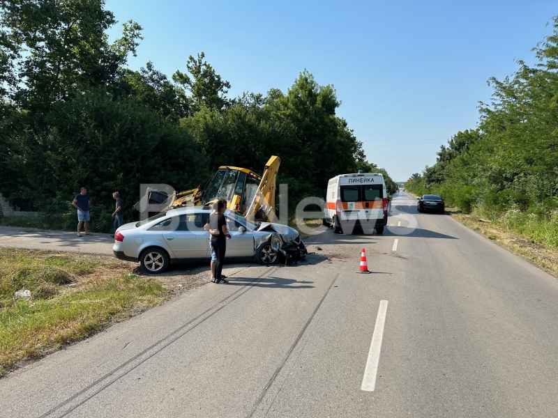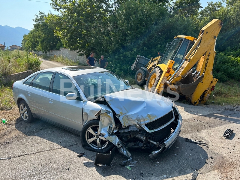 Ударът е бил толкова силен, че колата почти е преобърнала тежката машина. Нанесени са и сериозни материални щети по „Ауди“-то, чиято предница е смазана.