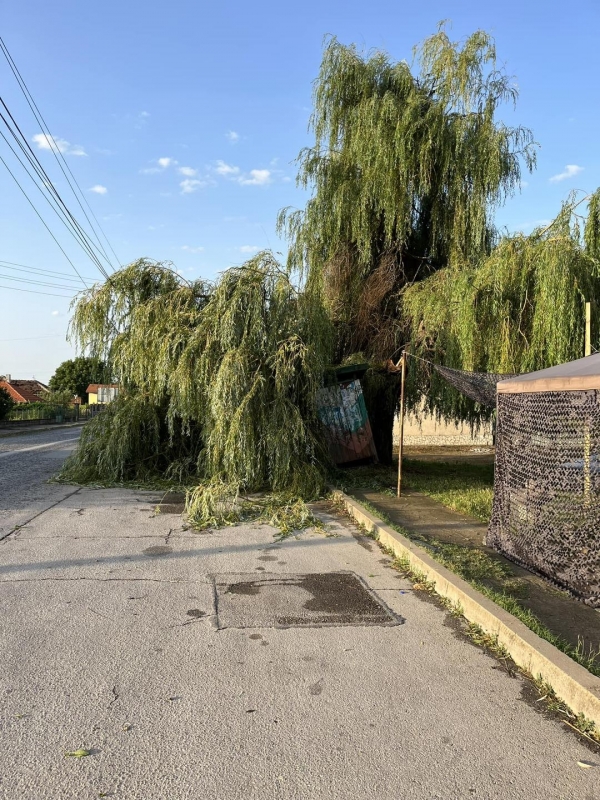 Специализираната техника на Пожарна безопасност е ангажирана с разчистването на паднало дърво в село Баница и в участък от пътя за село Чирен.
