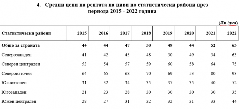 Традиционно най-скъпи са нивите в Североизточна България, където е и житницата Добруджа. Там средната цена на декар достига 2 043 лв., което е 32% ръст за година. Област Добрич е лидер с 2 832 лв. на декар, следват областите Варна с 2022 лв., Силистра – 2 007 лв., Монтана – 1 810 лв. и Русе – 1 632 лв. на декар.