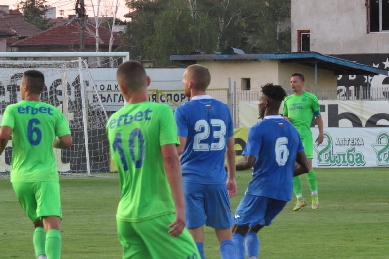 През първото полувреме се игра в половината на гостите, които на моменти се бранеха с 9 души. В 8-та мин. бе създадена и първата опасност пред вратата им, но Кевин Беманга не се възползва от прецизното центриране на Димитър Буров. Малко след това Стефан Каменов нахлу в пеналта от дясно, но пасът към Буров бе малко дълъг за него. Най-чистата ситуация за гол дойде в 37-та мин. Тогава Владислав Цеков-Каската насочи от фаул топката в долния ляв ъгъл, вратарят Галин Григоров изби, но при добавката Каменов от близо стреля над вратата.