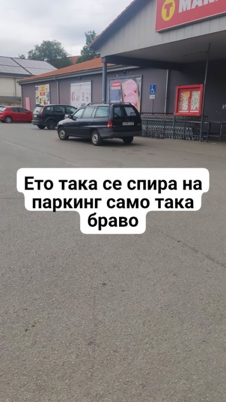„Ето така се спира на паркинг. Само така, браво!“, пише към снимката възмутеният човек.