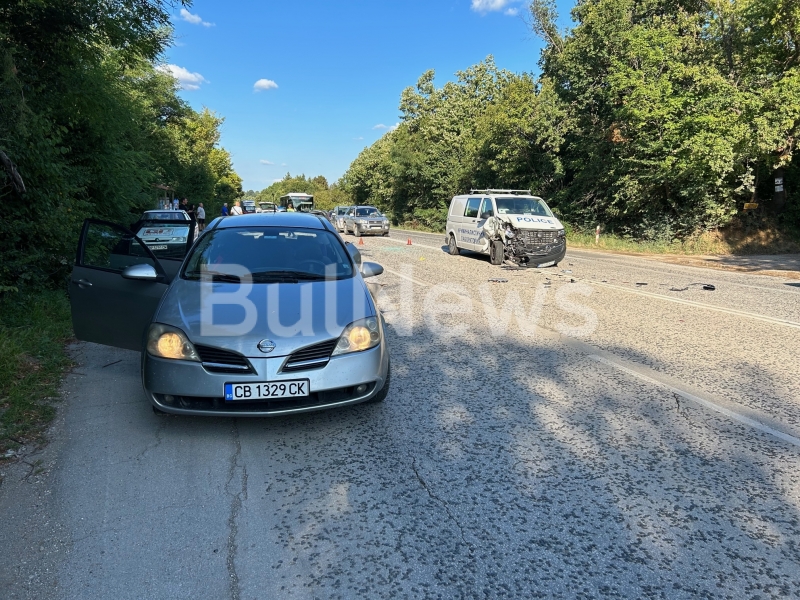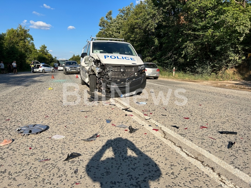 Извънредно! Тежка катастрофа с полицейски бус край Враца, пътят е блокиран /снимки/