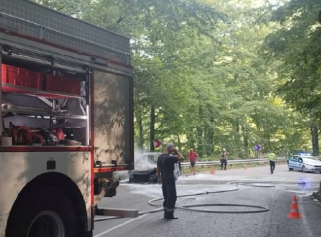 Кола пламна на прохода "Петрохан", научи агенция BulNews.