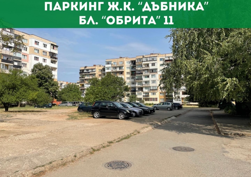 Осигурени са средства и за изграждането на паркинг в района на бл. „Орбита“ 11 в ж.к. „Дъбника“ /зад детска градина „Радост“/. След финализирането на проекта в междублоковото пространство ще бъдат обособени близо 90 места за паркиране.
