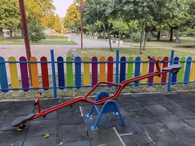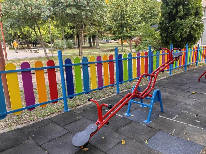 Готова е и детската площадка пред х-л "Огоста". Подменена е оградата с нова, уредите за игра са проверени, укрепени и освежени.