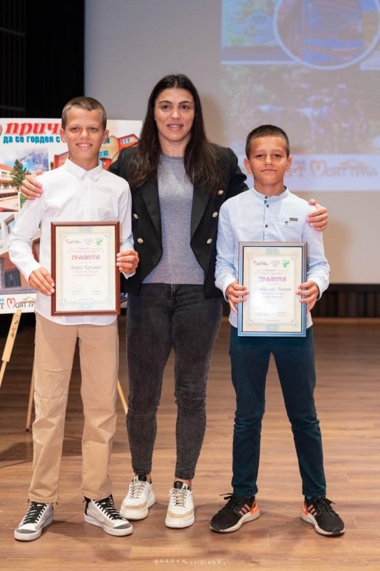 Двукратната европейска шампионка по борба Мими Христова награди младите надежди на борбата Борис Крумов и Владислав Иванов – състезатели на Клуб по борба „Ботев 93“.