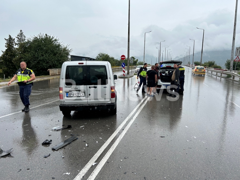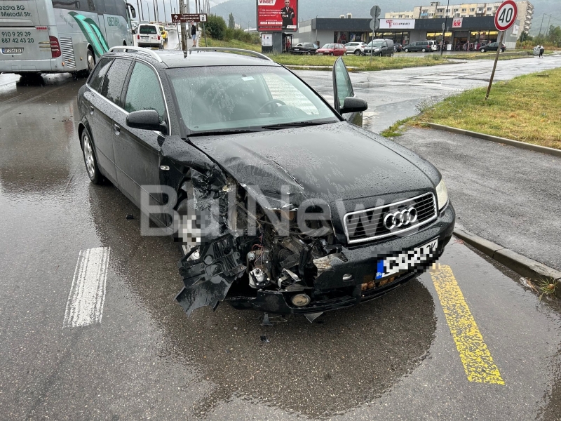 Пореден инцидент в дъжда! Две коли се натресоха във Враца, трафикът е затруднен /снимки/