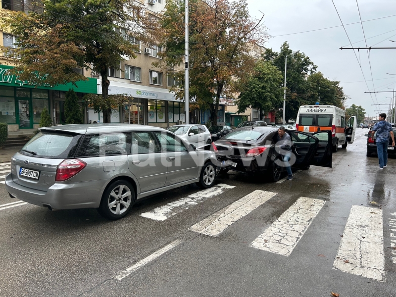 Лек автомобил „Опел“ спрял на пешеходна пътека, за да пропусне човек. В този момент с висока скорост в него се забило „Субару“ И двамата участника в катастрофата са с врачански регистрационни табели.