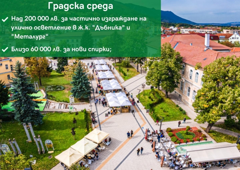 - 200 000 лв. за изграждане на частично улично осветление в ж.к. “Дъбника” и “Металург”;